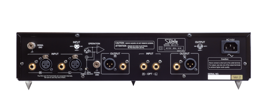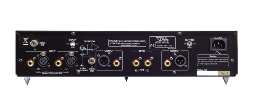 A balanced input for MC cartridges is adopted. When using XLR two-core shielded cables for balanced inputs, the E-1ver.2 becomes a perfectly balanced non-NFB phono equalizer from input to output.