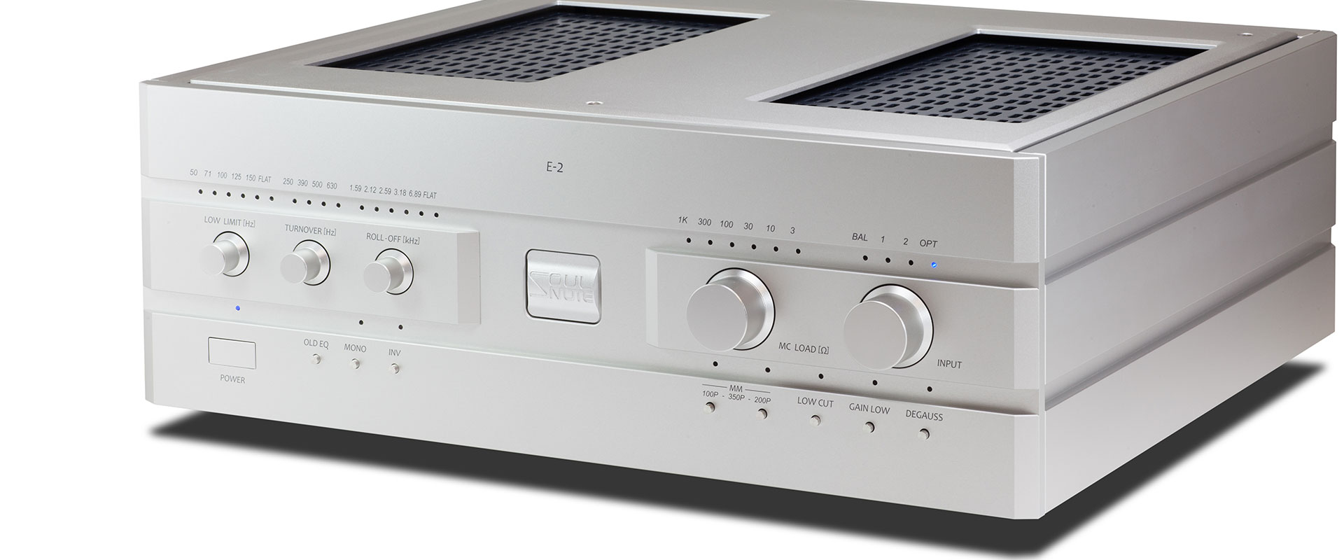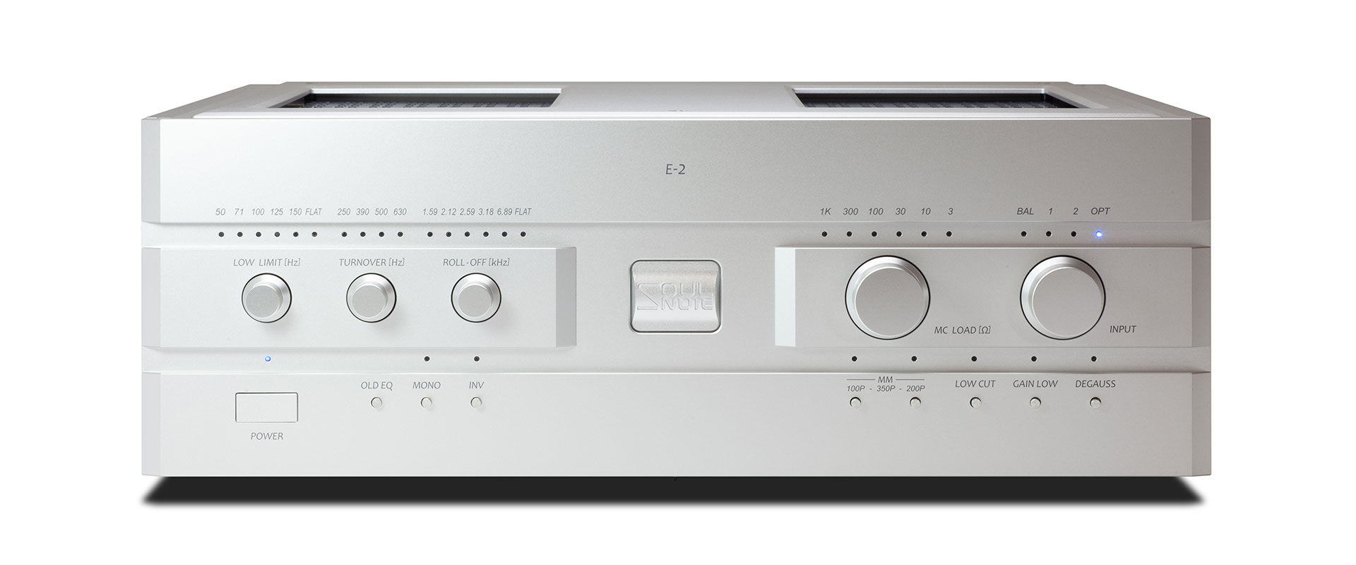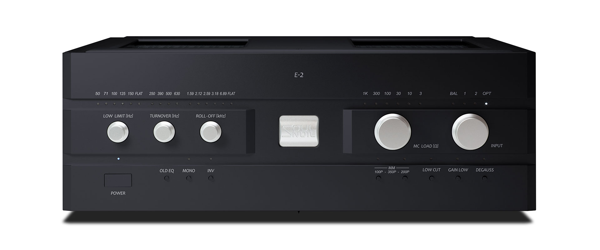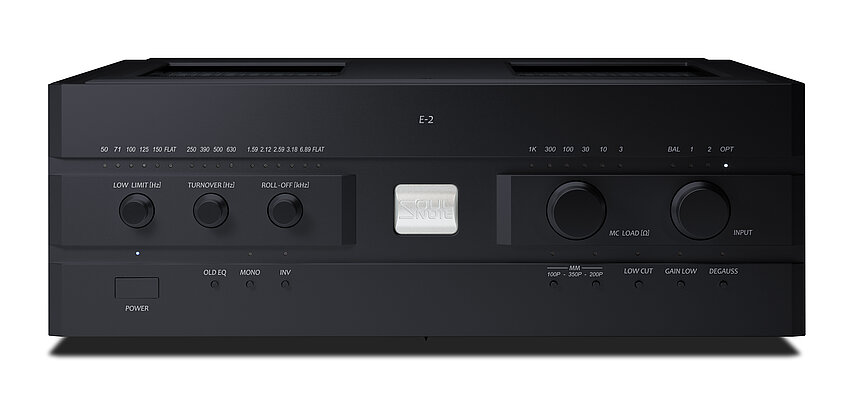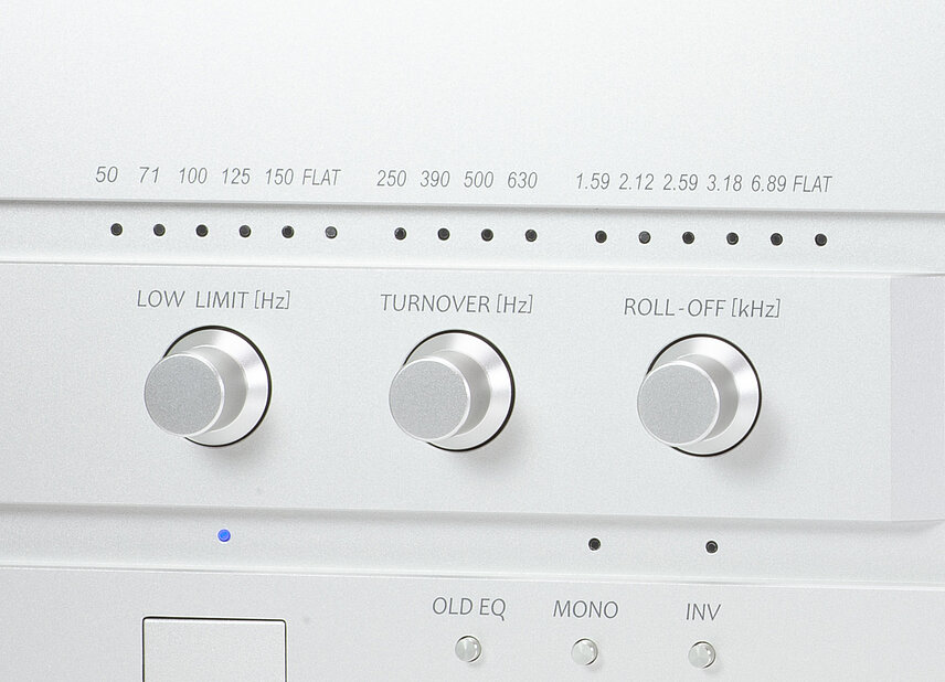 Six types of Roll Off (high-frequency attenuation frequency), four of Turn Over (low-frequency amplification frequency) and six of Low Limit (ultra-low-frequency amplification restriction) are all independent of each other and can be changed individually. They offer a total of 144 types of curves, from Decca and COLUMBIA to early SP records (FLAT). By using these individual adjustment knobs, the most appropriate equalizer curve can be selected. Alternatively, the equalizer curve can be customized to use the included equalizer curve sheet. Equalizer curve switching is performed using mechanical relays, prioritizing sound quality.