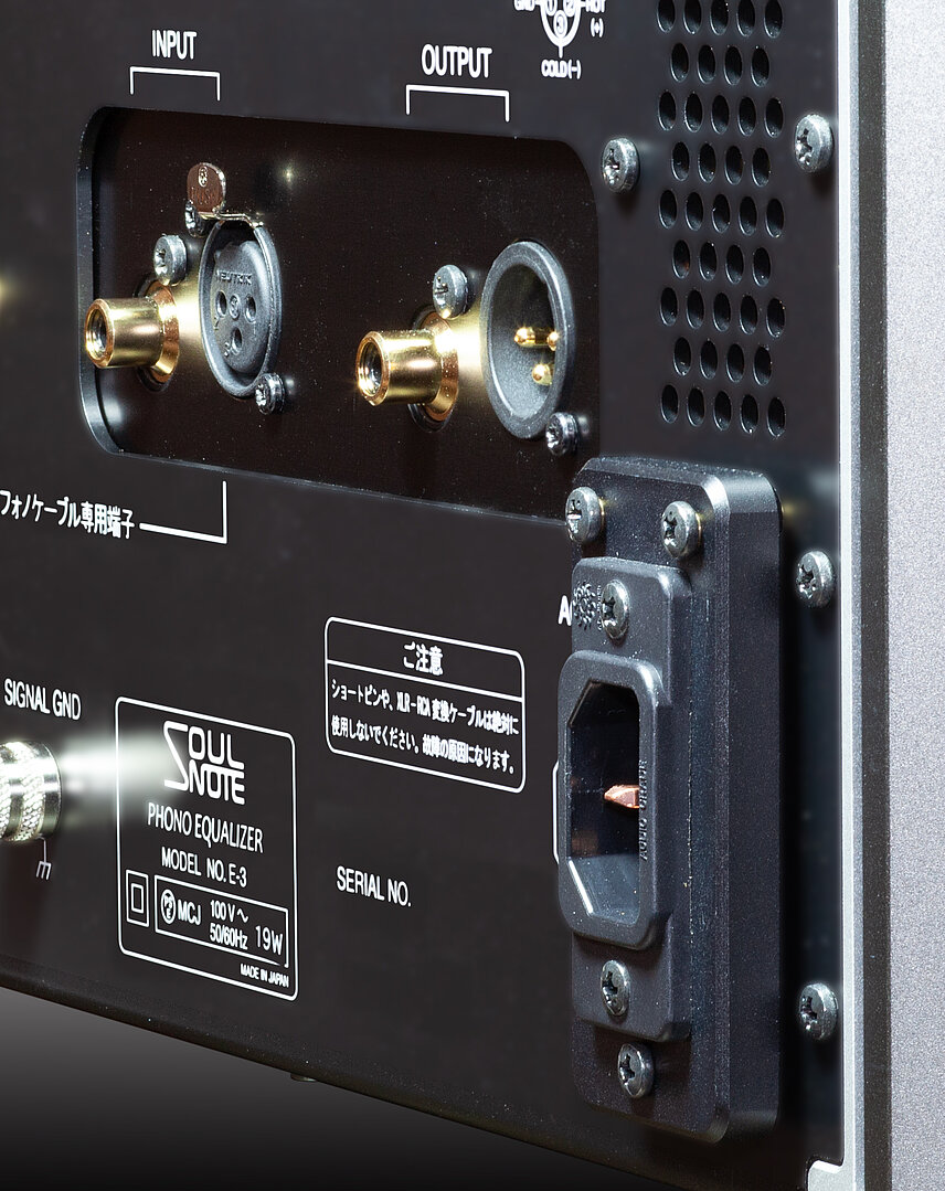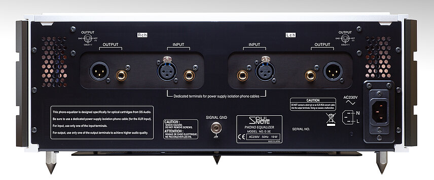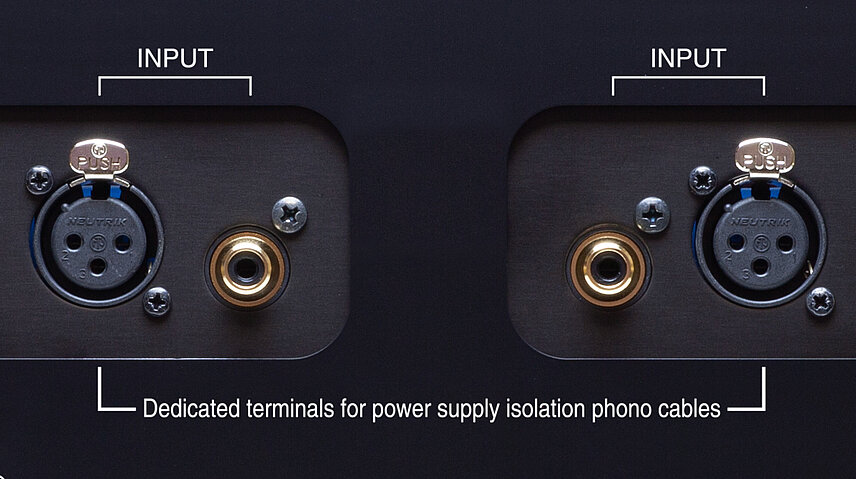 The XLR input terminals are compatible with the "power supply separated phono cable" developed by DS Audio and Uesugi Laboratories. By separating the paths of the fine phono signal and LED current, the SN and dynamism that are the characteristics of optical cartridges are further improved.