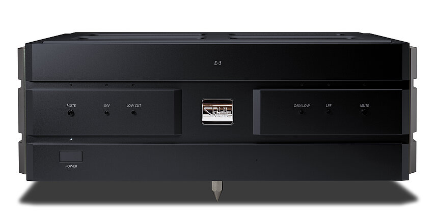 Artificial satellite grade ultra-high precision foil resistors with exceptional temperature properties have applied and have made additional customizations with an emphasis on sound quality. These ultra-high sound quality resistors were developed in-house and employ a naked foil design to eliminate dumps with mold resin. The E-3 uses ultra high-quality naked foil resistors for all resistors related to sound quality.